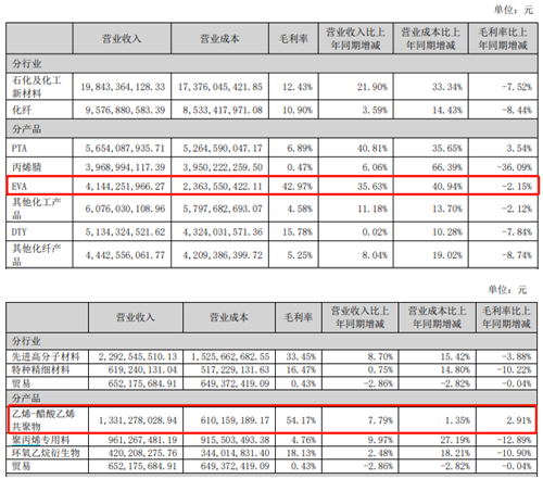 公然数据显示,东方盛虹目前苛重的利润根源是光伏用EVA,凭据2022年半年报披露,公司的EVA产物线%,较上年同期还下滑了2.15个百分点。但与此同时,同样是邦内EVA苛重坐蓐企业的上市公司联泓新科,正在其2022年半年报中则披露,同期EVA(乙烯-醋酸乙烯共聚物)的毛利率则高达54.17%、比东方盛虹高了10众个百分点,并且联泓新科的EVA毛利率正在2022上半年是同比添补的。针对同样的产物,东方盛虹的剩余本领弱于同行,并且透露出与同行业领先公司转折趋向相反的剩余本领阑珊,对此公司正在给与记者采访时外现:“区别的核算方法会导致毛利率存正在分歧,好比将研发相干的进入及本钱属性的进入如:平安坐蓐费、维修费等计入时刻用度科目。”