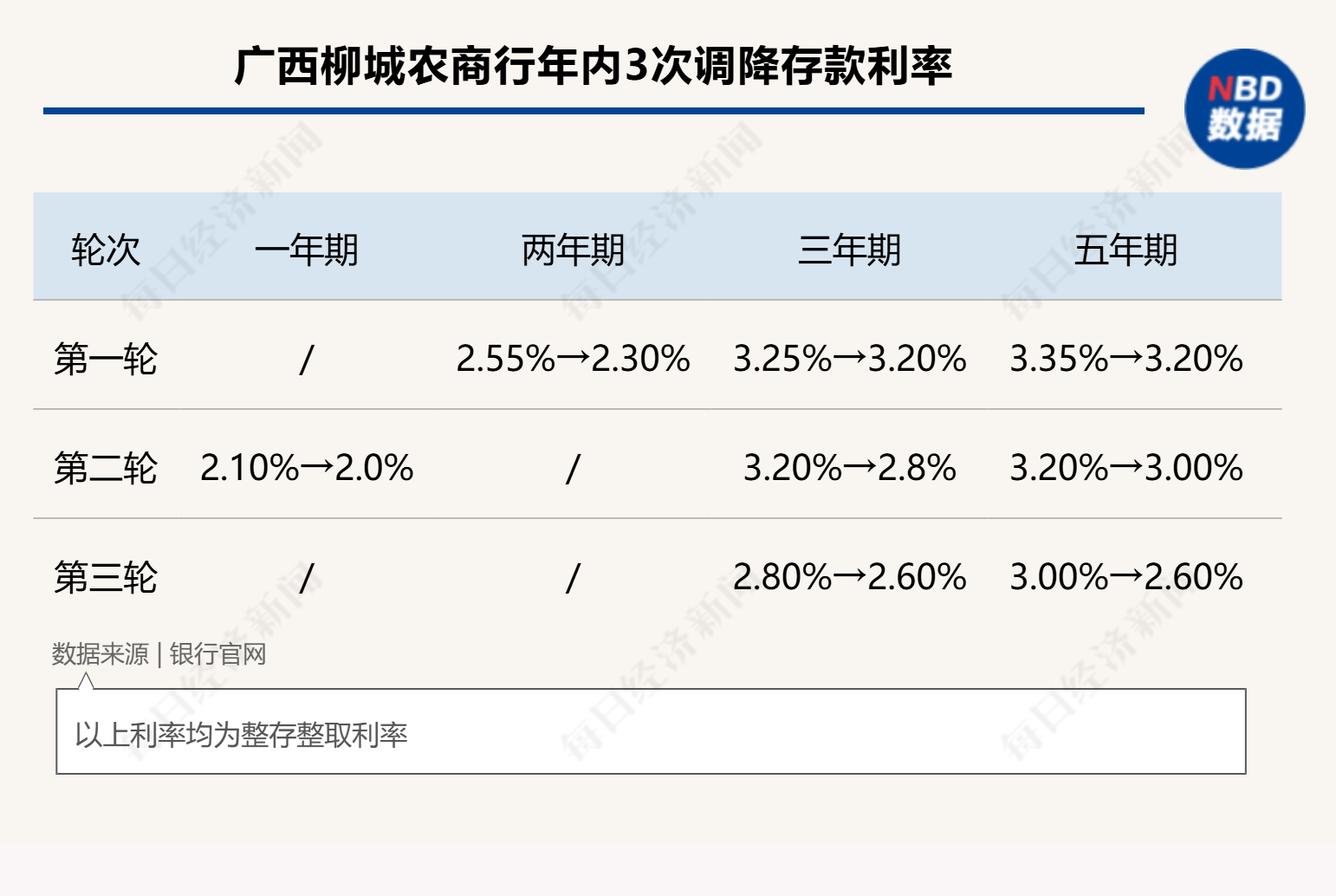 记者留神到,片面银行年内已举行了数次存款利率下调。比如,广西柳城农商行的存款挂牌利率年内已举行了三次调治,此中整存整取三年期、五年期岁首分歧为3.25%、3.35%,目前均降至2.60%。