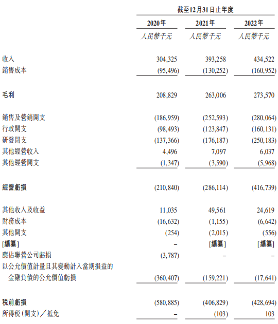招股书显示,于2020年、2021年及2022年,臻和科技分散录得收入百姓币304.3百万元、百姓币393.3百万元及百姓币434.5百万元。同期,公司分散录得筹备赔本百姓币210.8百万元、百姓币286.1百万元及百姓币416.7百万元,净赔本百姓币580.9百万元、百姓币406.9百万元及百姓币428.6百万元。经估量,三年累计赔本14.16亿元。