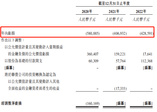 同期,公司分散录得筹备赔本百姓币210.8百万元、百姓币286.1百万元及百姓币416.7百万元,净赔本百姓币580.9百万元、百姓币406.9百万元及百姓币428.6百万元。经估量,三年累计赔本14.16亿元。