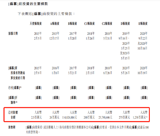 上市前,公司共引入7轮融资,从2015年2月引入天使轮融资250万元到2020年10月引入E轮融资,共计融资17.22亿元。