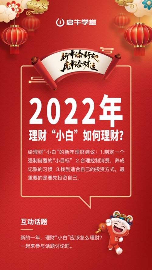 2022年新春景降之际,为了襄帮更众理财小白正在投资理财初学阶段少走弯道,让宽广理财新人认识到常识的要紧性,促使投资新手们创筑确切的理财观,启牛黉舍推出系列公益短视频《新春理财攻略》,并邀请清华大学金融科技商量院副院长、中邦保障与养老金商量核心主任魏晨阳担当实质向导,用专业的常识襄帮大众叩开投资理财的大门。