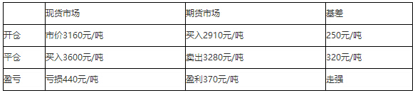 例:5月初,某饲料公司估计3个月后须要购入3000吨豆粕。为了预防豆粕代价上涨,该饲料公司买入9月份豆粕期货合约300手(每手10吨),成丁宁价为2910元/吨。当时现货市集豆粕代价为3160元/吨。至8月份,豆粕现货代价上涨至3600元/吨,该饲料公司按此代价采购3000吨豆粕,与此同时,将豆粕期货合约对冲平仓,成丁宁价为3280元/吨。