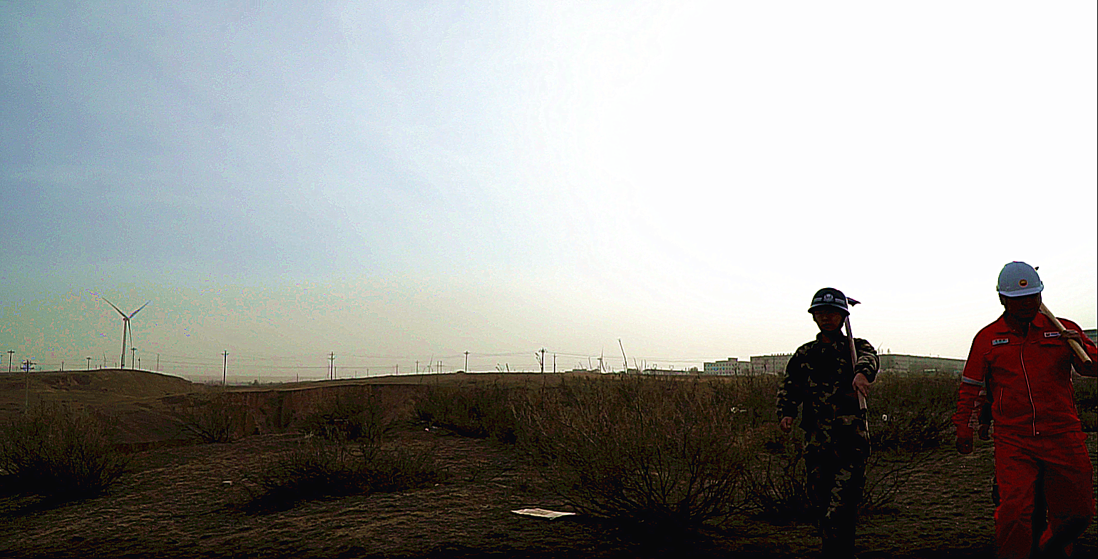 初冬的雪纷纷扬扬,茫茫沙漠滩上沙沙风响。管道巡护运维队队长胥耀辉和巡护队员们迈着顽强的程序一步一个足迹测量着输油管道。