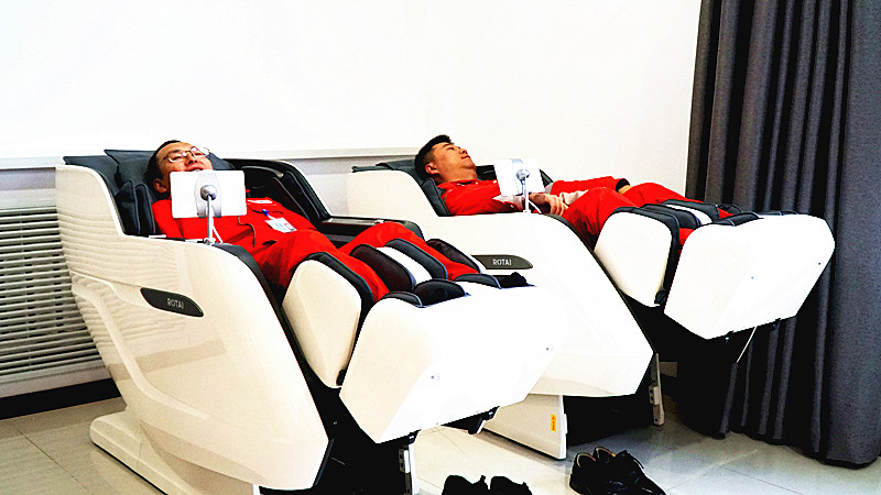 “咱们事务通常刻维持全身心加入,涓滴不行懒散。下了班,可能健身、下棋、念书、推拿,松开一下。”时间员赵云海指着推拿椅告诉记者,那是新配的两台,可能边听音乐边推拿,缓解疲惫,松开身心。