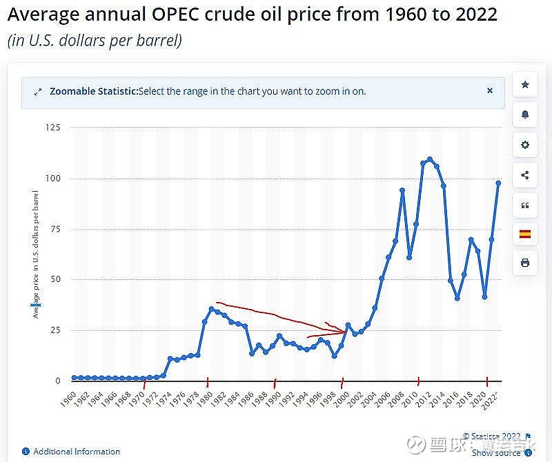 1960-1970年低油价岁月:1960年OPEC创办以前,寰宇石油“七姐妹”支配着石油的分娩和需求。此时原油代价处于每桶1.8~2美元的代价上。