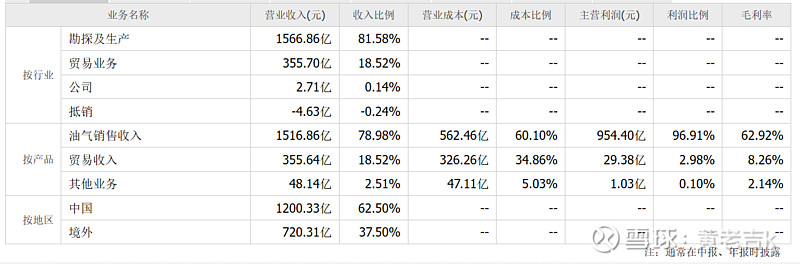 公司交易可根本分为油气勘测开辟及分娩、原油及自然气营业和可再生洁净能源三大板块。勘测开辟及分娩占81.58%,按产物油气贩卖收入占78.9%,邦内:外洋=6:4。