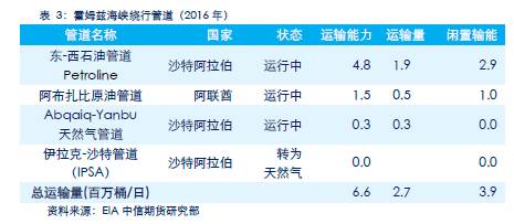 大大都可绕行霍尔木兹海峡的管道都暂未运营,目前只要沙特阿拉伯和阿联酋具有绕行才干。截至2016年末,两邦合计可用原油管道运量约为660万桶/日,闲置运能约为390万桶/日。
