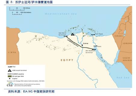 假设船只无法穿过苏伊士运河,萨米德管道便是将原油从红海运送至地中海的独一替换途径。苏伊士运河和萨米德管道同时紧闭将迫使油轮绕行非洲南端好望角,使沙特到美邦的运距加众约2,700英里,航程加众8-10天;到欧洲航程则加众15天驾驭。