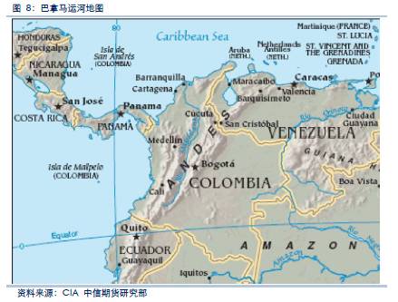 巴拿马运河的替换航路是位于南美洲南端的麦哲伦海峡(the Straits of Magellan)、合恩角海峡(Cape Horn)和德雷克海峡(Drake Passage)。这些海峡会加众8000英里的运距,使运输功夫和本钱大幅加众。